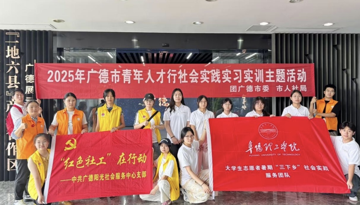 圖為紅色驛站志愿者、老師與阜陽理工學院學生參觀蘇皖合作示范區(qū)后合影 廣德城市紅色驛站供圖