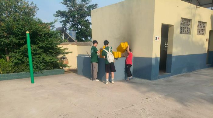 圖為實(shí)踐隊(duì)員在小學(xué)進(jìn)行打掃。陳慶香通訊員攝