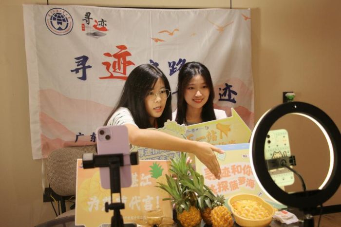 “朋友們看這個菠蘿酥,金黃色的菠蘿果肉纖維看得見,一口咬下去奶香味十足。”在精心打造的百千萬工程助農直播間里,來自廣東外語外貿大學的尋跡實踐團成員們正以專業又接地氣的講解,推介菠蘿酥、菠蘿月餅等徐聞特色農產品。
