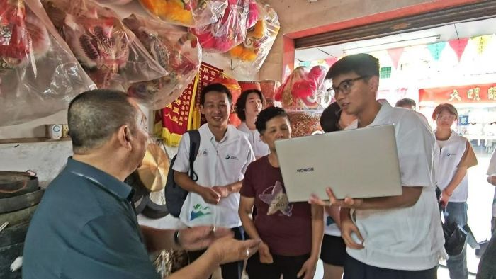 作坊內彌漫著桑皮紙漿的氣息,實踐隊員們正圍繞測量數據和模型細節進行交流討論,聲音在騎樓間蕩開。原來數字不是冷的,當它接住匠人的指尖溫度,代碼也能長出溫情的棱角。