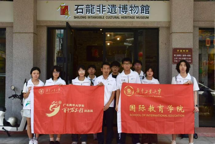 圖7: 廣東工業大學國際教育學院“數字醒獅”實踐隊在石龍非遺博物館前合影。(劉佳豪 攝)