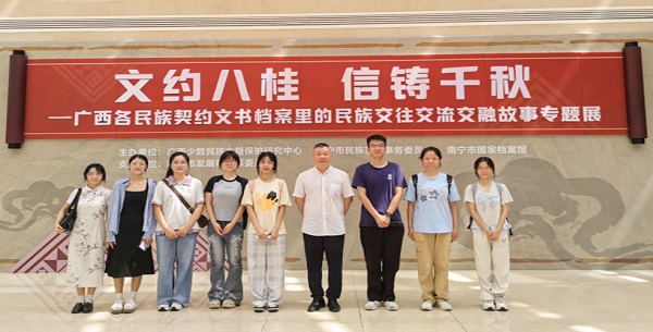 此次調研行動正逢“文約八桂 信鑄千秋——廣西各民族契約文書檔案里的民族交往交流交融故事專題展”,成員們從該展覽中探尋壯族古籍蹤跡,感受壯族文字在廣西各民族契約文書檔案里留下的綿長氣息。
