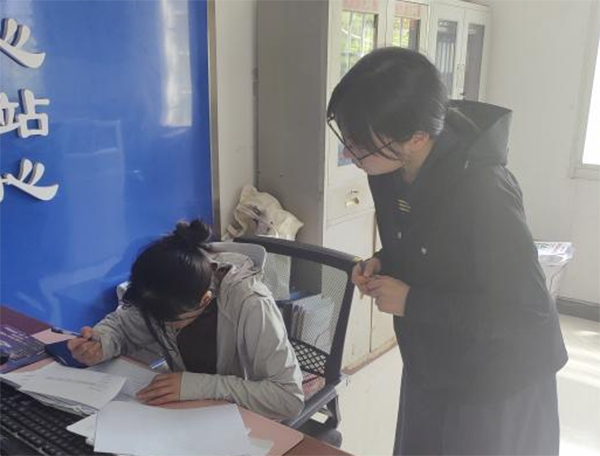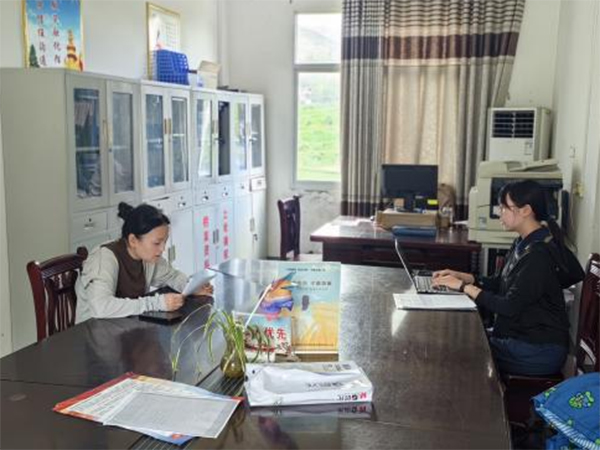 圖1:李橋村村干部認真填寫生態補償項目調研問卷