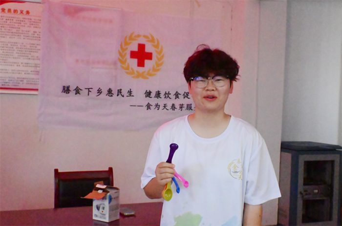 科普入村:健康知識落地生根 7月3日,河口村村委會內,一場面向老年群體的健康科普講座正在進行。服務隊成員圍繞高血壓、高血糖、高血脂(“三高”)的成因、危害及預防展開講解,結合當地飲食習慣,重點闡述合理膳食的關鍵作用。為將“低鹽飲食”理念轉化為日常實踐,隊員們向在場老人發放控鹽量勺,并手把手演示科學使用方法,將“低鹽飲食”的理念轉化為可操作的具體行動,有效提升了老人們的健康管理意識。