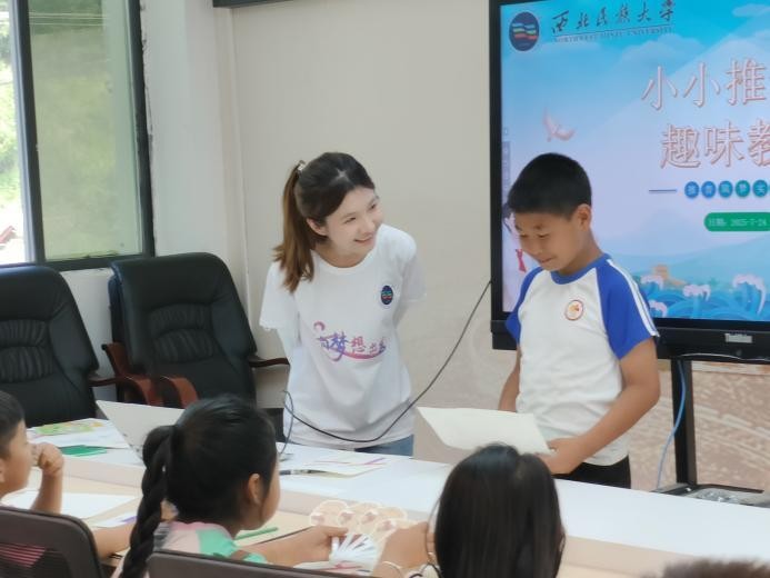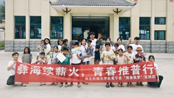 2025年7月21日,西北民族大學(xué)赴冕寧縣“推普筑夢”實(shí)踐團(tuán)深入四川省涼山彝族自治州冕寧縣彝海村,結(jié)合青少年成長需求與文化認(rèn)同培育,精心設(shè)計(jì)并教授了以《彝海續(xù)薪火,青春推普行》為主題的“小小推普員”國家通用語言文字推廣普及系列課程。課程共包含7節(jié)內(nèi)容,包含語言基礎(chǔ)知識(shí)、使用能力培養(yǎng)、情感交融與思政課堂等,內(nèi)容豐富,形式多樣。