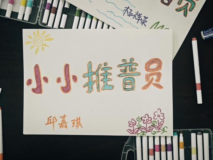 圖為實(shí)踐團(tuán)成員手繪“小小推普員”獎(jiǎng)狀