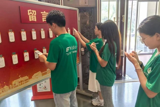 (圖九團(tuán)隊(duì)成員在中共長沙歷史紀(jì)念館前留言)