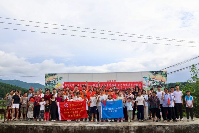 “長亭外,古道邊,芳草碧連天”,隊員們與所有青少年在表演臺上牽手同唱,文化節(jié)在《送別》的旋律中落幕。最后的班會上,服務隊為孩子們分發(fā)大禮包,“老師,我以后來長沙找你”“這是送給你的禮物”等話語與淚水交織,大家相擁合影,約定共赴美好明天。這場告別背后,是服務隊留下的一串串實踐印記:教當?shù)厍嗌倌晔褂肁I修復的紅色老照片并將照片贈送他們;共同繪制的“籬笆公約”被貼在村活動中心墻上,成為村民共同遵守的行為規(guī)范;彩繪石頭、生態(tài)瓶、紙橋等等,這些印記終將成為鄉(xiāng)村生長的養(yǎng)分,助力白溪關村在振興之路上綻放更耀眼的光芒。