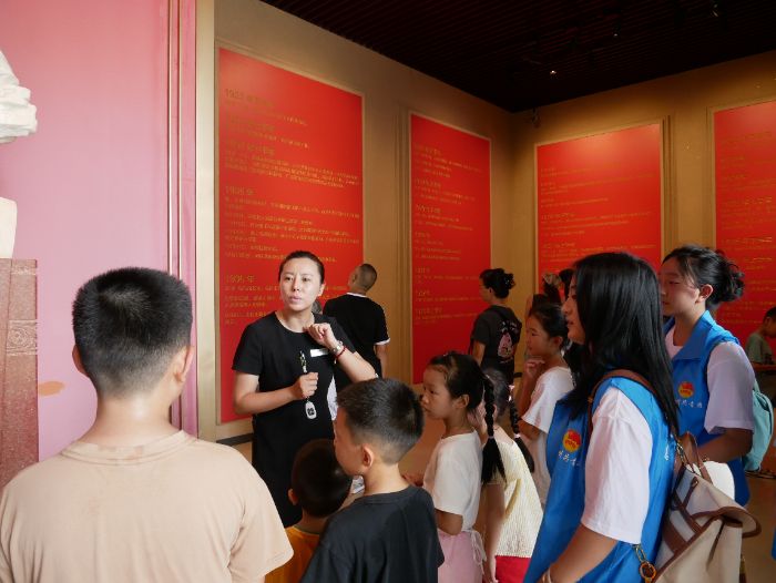圖為實(shí)踐隊(duì)員與孩子們聽講解