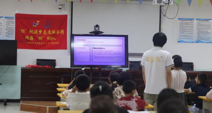 圖為“楊”帆筑夢志愿服務團成員進行網絡安全宣講。康雯萱供圖