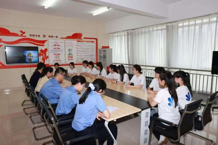 圖為實踐團成員與沂南法院民事審判庭庭長座談交流