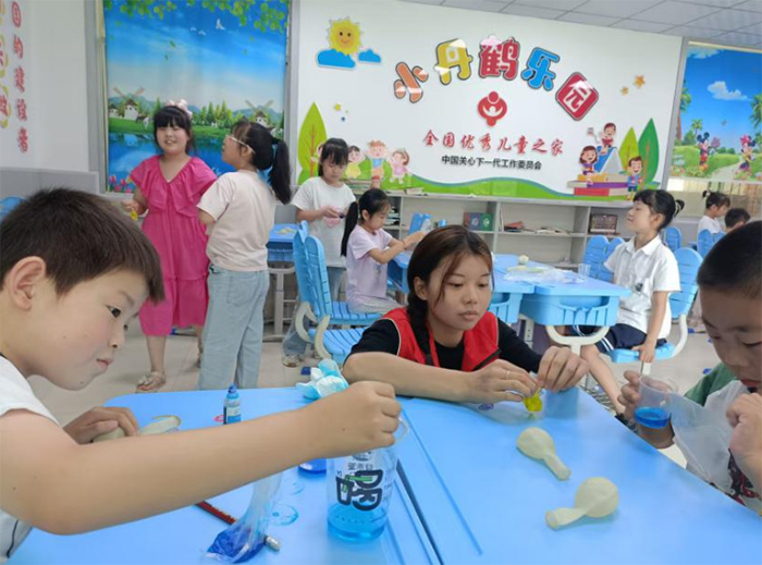 圖為實踐團成員幫助孩子做實驗。樊玲玲 供圖