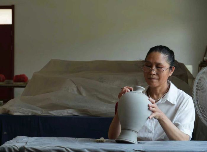 2008年,彩陶廠改制,匠人“端人飯碗,受人管”,按指令生產(chǎn)的模式完全改變,迎來了創(chuàng)作自由。“我最舒服的時候就是從08年開始,想畫什么,想做什么都由我們自己決定。心情舒服,作品出來都不一樣,心情不好的時候,我都不會碰作品,在那種狀態(tài)下出來的次品,是對買家的不負責。”談到08年,盧莉華笑著說。近幾年,隨著其外甥、侄子及其他年輕人的加入,為彩陶發(fā)展注入了新的活力。彩陶廠開始大膽突破傳統(tǒng)的瓶罐器型,創(chuàng)新開發(fā)實用性強、符合現(xiàn)代生活美學的產(chǎn)品,例如果盤、筆筒、筆架、擺件等,注重融入新思維,開發(fā)旅游產(chǎn)品,主動跑市場,告別以往坐等訂單的銷售模式,讓古老技藝煥發(fā)出了新的生機活力。
