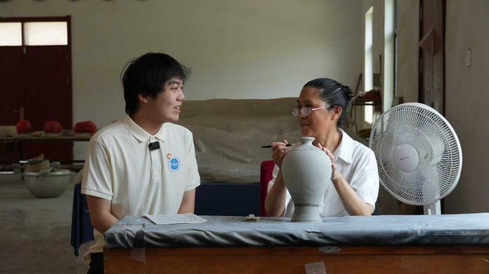 大音無聲,大象無形,皖北黃土地里燒出的“活的靈魂”——界首彩陶。作為國家級非遺“界首彩陶燒制技藝”的省級傳承人,盧莉華用30余年光陰,以刀為筆、以泥為紙、以火為魂,讓皖北大地的千年彩陶技藝在時代浪潮中生生不息。2025年7月8日下午,為了親身感受這項技藝的精妙之處,黃山學院文化與傳播學院“陶出新彩,藝路生花”團隊奔赴安徽省阜陽市田營鎮(zhèn)與盧莉華一起展開了一場關于界首彩陶的深度對話。