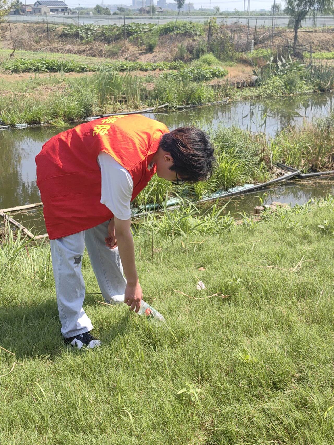 另有成員身穿紅色“優培學院”志愿馬甲,在河岸草地仔細搜尋垃圾,以實際行動守護河道清潔,用青春汗水踐行“河小青”護河使命。