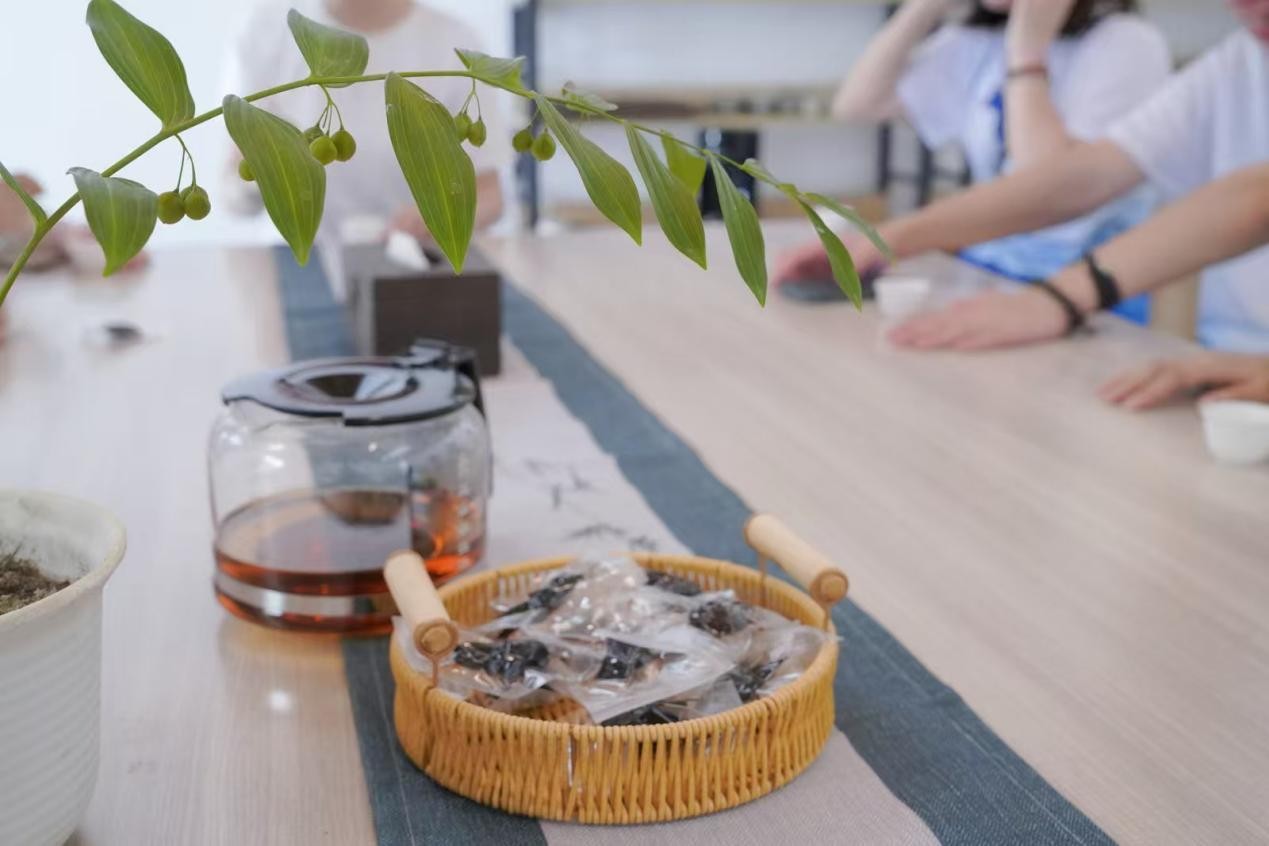 在基地產品展示區,團隊成員開啟了一場獨特的黃精風味體驗。茶香的清香和果脯的甘甜交織在味蕾,讓人久久無法忘懷。隊員們一邊品嘗,一邊交流感受,直觀體會到黃精從田間食材到多元食品的轉化魅力,也更深刻理解精深加工對拓展黃精消費場景、提升產品附加值的重要意義。