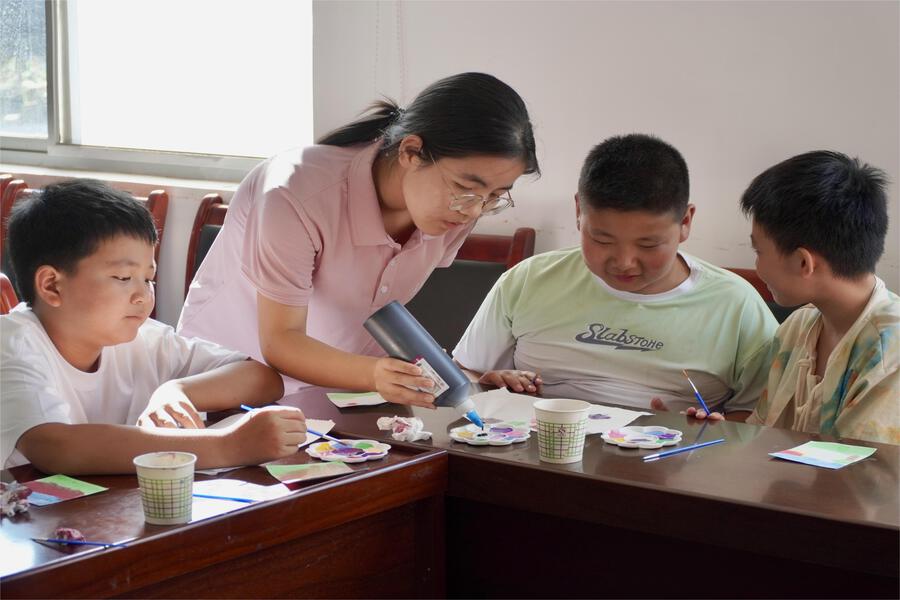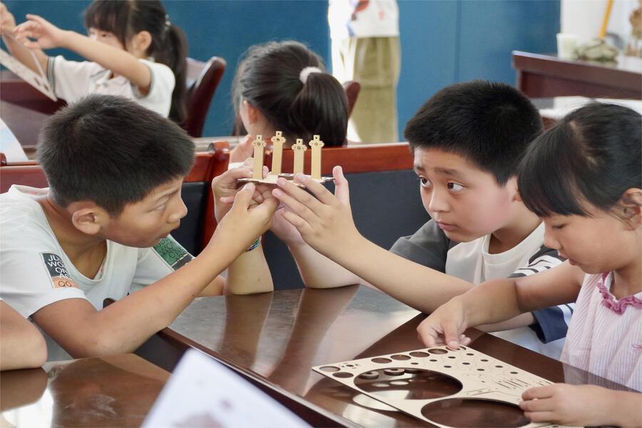 實(shí)踐隊(duì)以教育幫扶與文化傳承雙軌并進(jìn),構(gòu)建起“安全+文化+學(xué)業(yè)”三維幫扶體系。安全教育課上,孩子們在眾多案例中學(xué)習(xí)避險(xiǎn)小知識;趣味榫卯積木拼裝環(huán)節(jié),孩子們在動手實(shí)踐中感悟古建筑智慧;紅色教育課上,孩子們在錢學(xué)森歸國事跡和少年英雄故事中厚植家國情懷。捐贈的400余冊圖書和100余套文具,搭配藝術(shù)課、學(xué)業(yè)輔導(dǎo)等特色活動,契合孩童成長所需。這場盛夏之約,是青春與鄉(xiāng)土的雙向奔赴,智慧與童心的美好碰撞,深刻詮釋了青年學(xué)子服務(wù)鄉(xiāng)村振興的使命擔(dān)當(dāng),其點(diǎn)燃的火種必將照亮孩子們的前行之路。