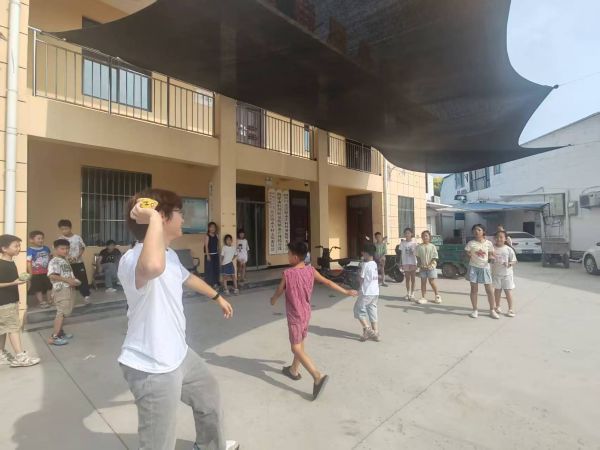 (圖為實踐隊隊員與孩子們進行扔沙包游戲 攝影:劉昕焱)