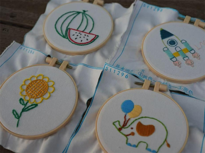執針實踐:體驗刺繡基礎針法 實踐體驗環節,隊員們圍坐桌前,在鮑老師徒弟的指導下嘗試平針繡與盤針繡。“劈線要穩,下針要輕,線跡要像排隊一樣整齊。”老師手把手示范,原本粗細的蠶絲線在她手中被劈成細如發絲的繡線,隊員們紛紛感嘆技藝的精妙。初次執針的隊員姜欣蕊緊張得手心冒汗,在反復練習后終于繡出整齊的線條,感嘆道:“看似簡單的針法,實則藏著大學問,這讓我更敬佩傳承人幾十年如一日的堅持。”指尖的刺痛與完成作品的喜悅交織,讓隊員們真切體會到“臺上一分鐘,臺下十年功”的深意。
