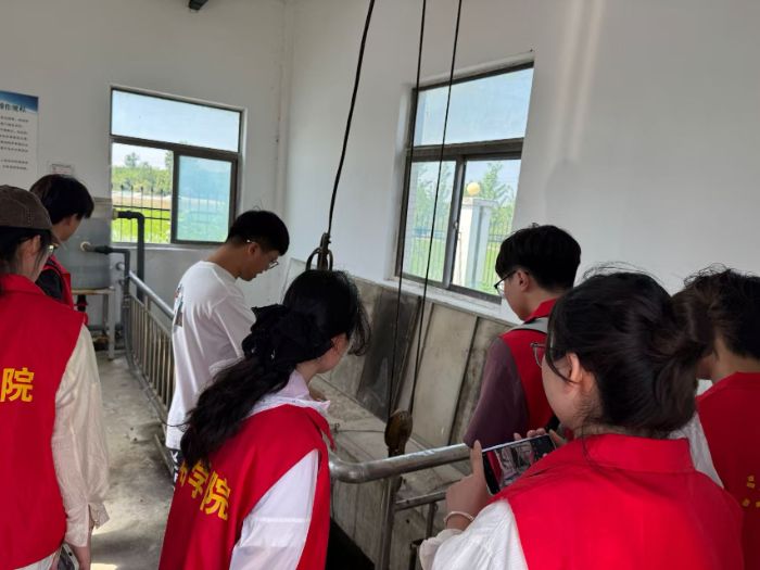 “大家現(xiàn)在看到的提升泵房,就像污水處理系統(tǒng)的‘心臟’,每天24小時(shí)不停運(yùn)轉(zhuǎn),將全鎮(zhèn)的生活污水‘泵’入處理流程。”在污水處理廠工程師的帶領(lǐng)下,實(shí)踐團(tuán)成員依次探訪了消毒池、提升泵房、纖維濾布濾池、流量槽、出水在線監(jiān)測房和二沉池,親眼見證了污水從渾濁到清澈的“蛻變”。
