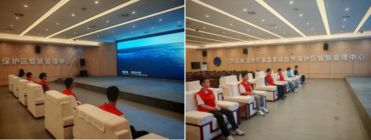 在丹頂鶴博物館報告廳,實踐團隊觀看紀錄片《一個真實的地方》,并圍繞鶴類追蹤技術、濕地調控方式及村民參與管理等方面開展記錄。