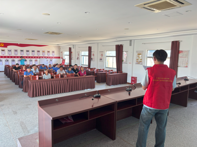 宣講前,團隊成員分發調查問卷,調研居民濕地認知情況;宣講中,宣講人以“濕地是什么”為切入點,重點圍繞“濕地三大功能”“人類活動影響”“本地典型濕地”等內容展開講解,向居民清晰介紹濕地類型、生態價值與保護困境,并結合圖示和案例提高參與性。