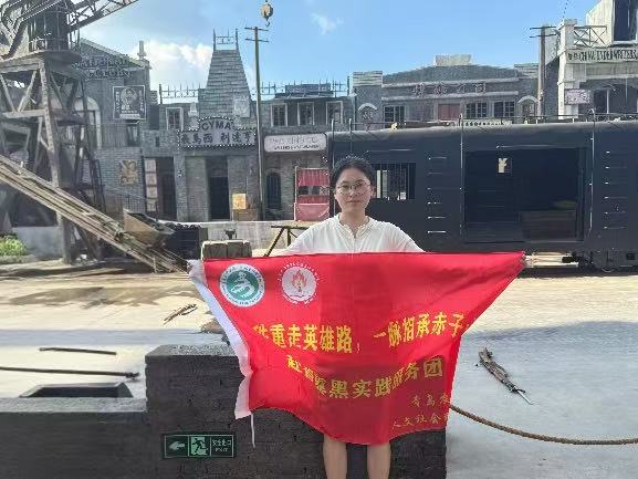 (圖為團隊成員在鐵道游擊隊影視基地參觀留念。唐家殷 供圖)