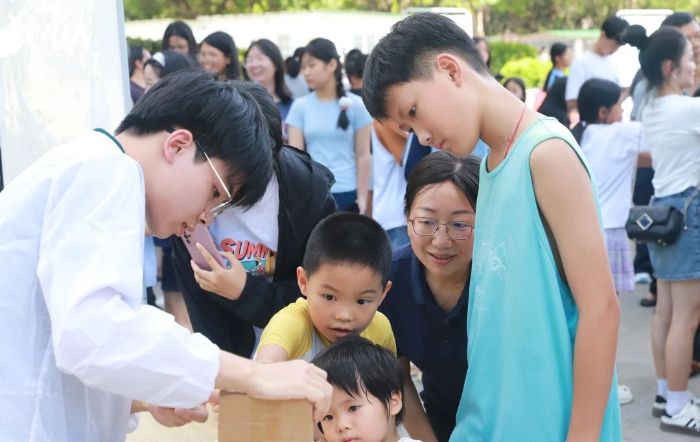本次科學嘉年華設十余個科普項目與互動環節。實踐隊員充分發揮專業優勢,在各個項目區域為孩子們講述實驗原理,解碼現象的深層奧秘。