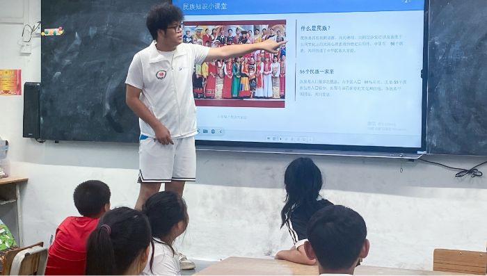 圖為老師介紹民族知識。“籽籽同行”突擊隊攝