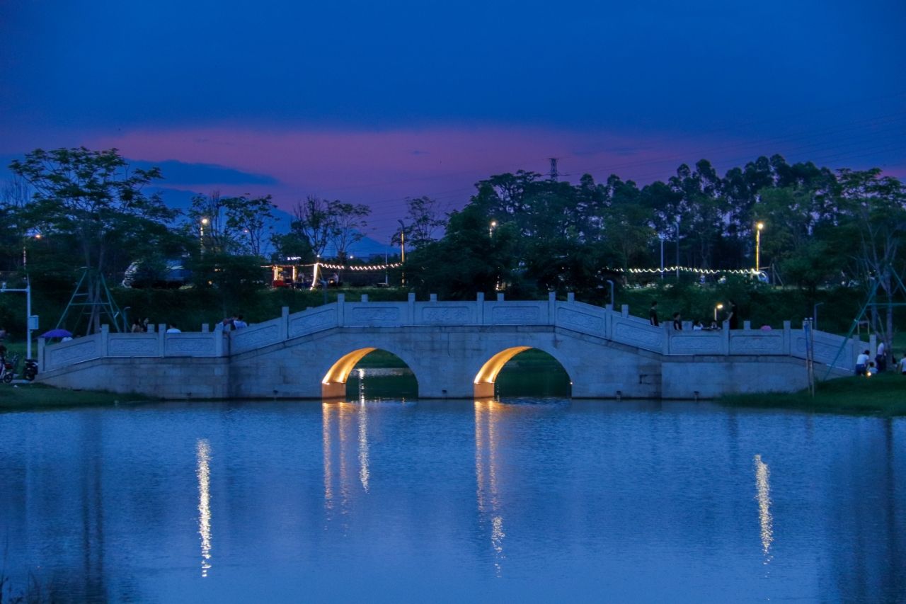 圖為宣傳組拍攝的東坑鎮狀元橋湖景夜色。羅庭鋒供圖