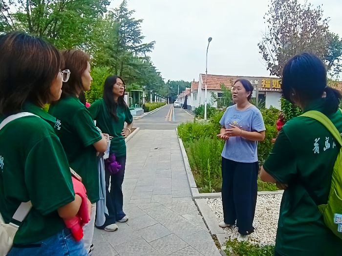 隊員們沿著景觀步道參觀了健身區、文化長廊、兒童樂園和生態濕地。村委工作人員介紹,公園由昔日的閑置地塊改造而成,既滿足了村民休閑娛樂需求,又成為展示村史文化的窗口。在文化長廊,團隊成員通過老照片、實物展品了解了東毛家莊村的發展變遷;在生態濕地,觀察到通過水生植物凈化水質的治理成果,直觀感受到鄉村在人居環境整治、公共服務提升方面的顯著變化,深刻體會到“共建共治共享”的鄉村治理理念。
