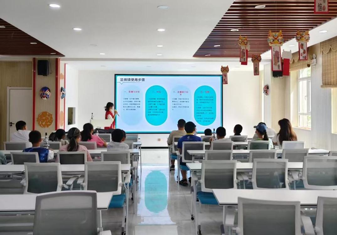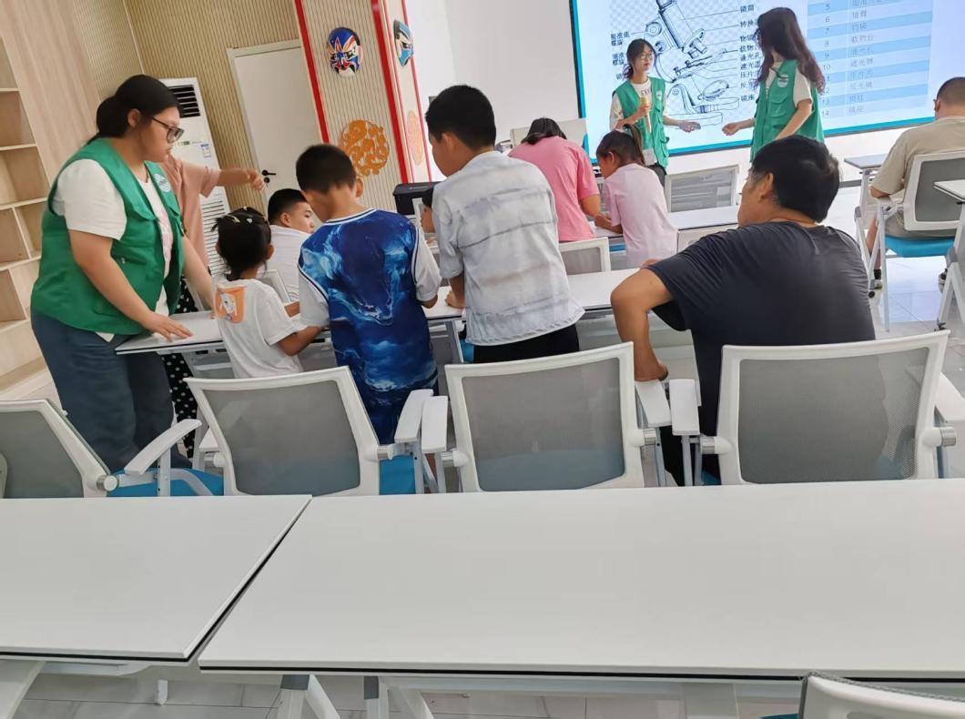 在小朋友使用顯微鏡的過程中,鼓勵他們自己去探索和發現。他們可能會發現洋蔥表皮細胞像是一個個小格子,每一個新的發現都會激發他們對科學的好奇心。而且,這也是培養他們耐心和專注力的好機會。因為使用顯微鏡需要小心翼翼地操作,并且仔細地觀察。在觀察結束后,團隊與小朋友進行互動,詢問他們的感受,小朋友紛紛表示很有趣。