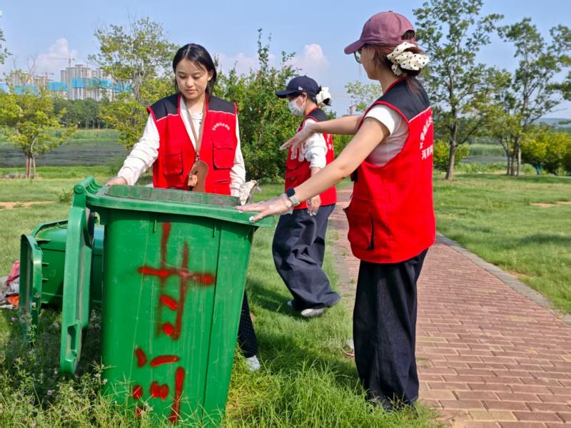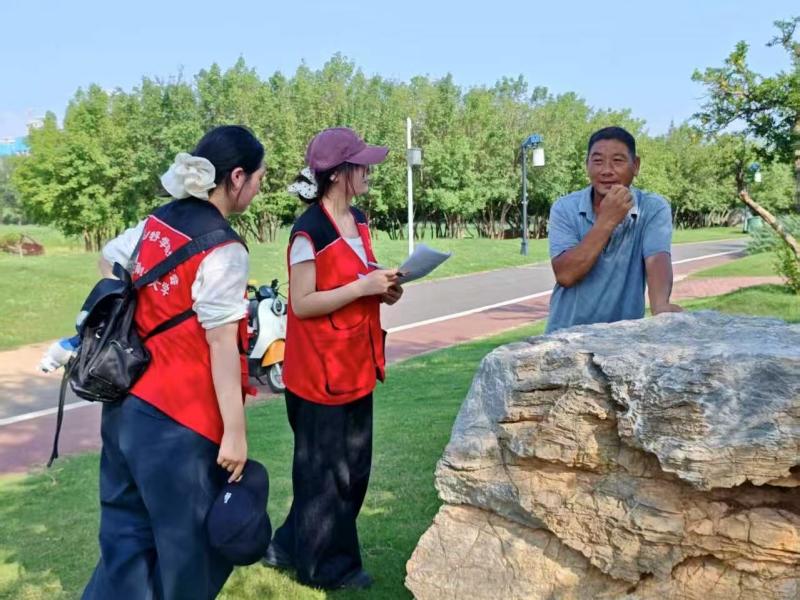 在實踐過程中,團(tuán)隊首先來到伊河濕地公園。成員們在公園內(nèi)隨機(jī)采訪路人,了解大家對濕地生態(tài)變化的直觀感受,并展開問卷調(diào)查。問卷內(nèi)容涵蓋附近居民對周邊環(huán)境變化的感知、日常環(huán)保行為以及對生態(tài)保護(hù)的建議等方面。無論是問卷調(diào)查還是采訪,居民們都熱情參與,他們紛紛表示,近幾年明顯感覺到環(huán)境變好了,河水更清澈,天空更湛藍(lán),周邊的動植物種類也越來越豐富。同時,成員們還積極向過往的群眾宣傳保護(hù)水資源、愛護(hù)環(huán)境等生態(tài)環(huán)保理念,傳遞志愿服務(wù)精神,呼吁大家爭做保護(hù)河湖健康的倡導(dǎo)者、參與者。