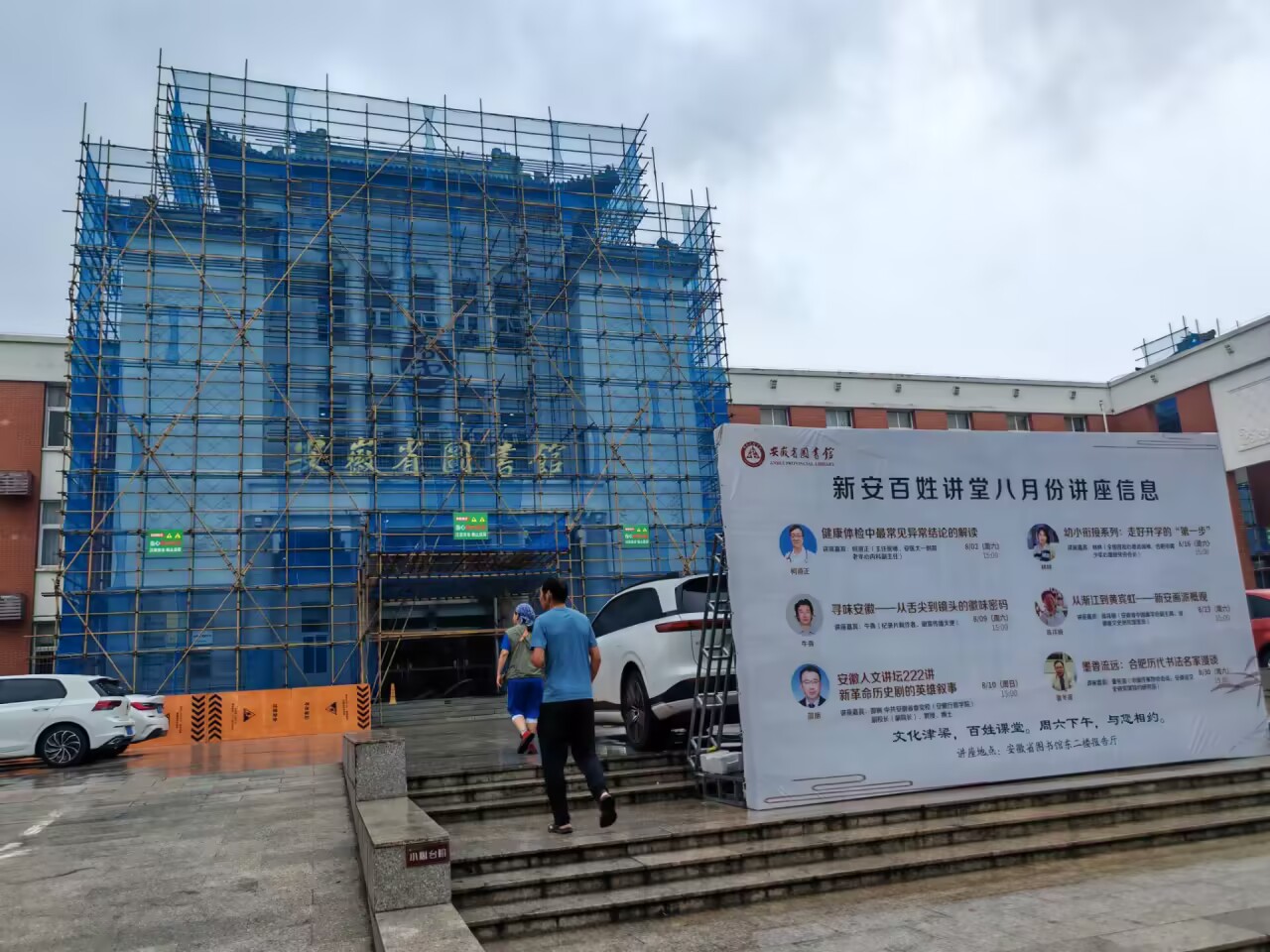場景一:修繕中的寧靜與活力,記者朱家偉首先注意到,盡管圖書館外立面正在進行必要的修繕維護,彰顯著對知識殿堂的“深耕”與愛護,但館內(nèi)秩序井然,服務不間斷。門口右側(cè)的大型展板預告著下個月豐富的“百姓講堂”活動,體現(xiàn)了圖書館持續(xù)服務公眾的承諾,與“云聚”文化資源的理念相通。