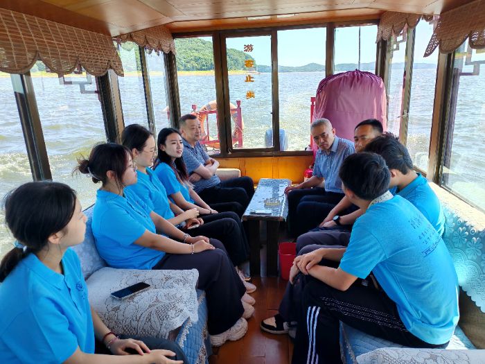 (團(tuán)隊(duì)成員與相關(guān)領(lǐng)導(dǎo)在龍山風(fēng)水庫(kù)游湖并就相關(guān)問(wèn)題進(jìn)行交談)