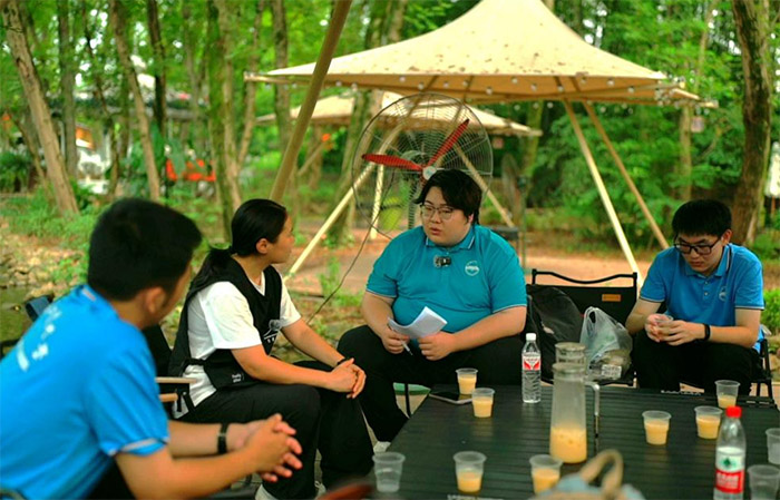 馮子丹女士為團(tuán)隊(duì)成員介紹竹蜻蜓美學(xué)營(yíng)地;段晨磊供圖
