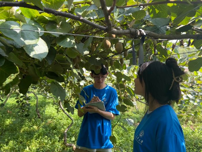 (圖為實踐隊員調研獼猴桃生長情況。通訊員劉辛怡攝)