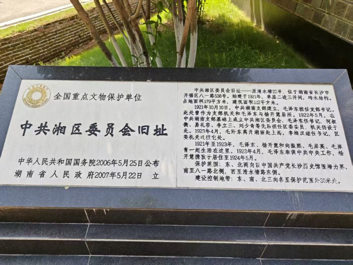 (圖為中共湘區委員會舊址暨毛澤東楊開慧故居石碑。通訊員肖伯健攝)