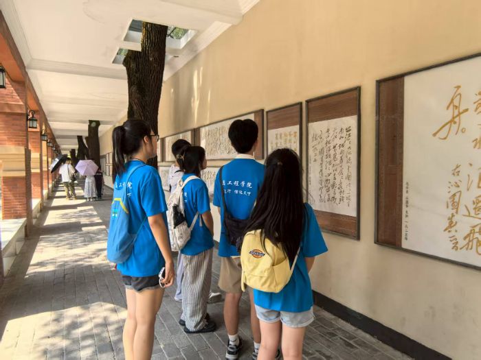(圖為實踐隊員參觀毛澤東詩詞對聯書法藝術碑廊。通訊員肖伯健攝)