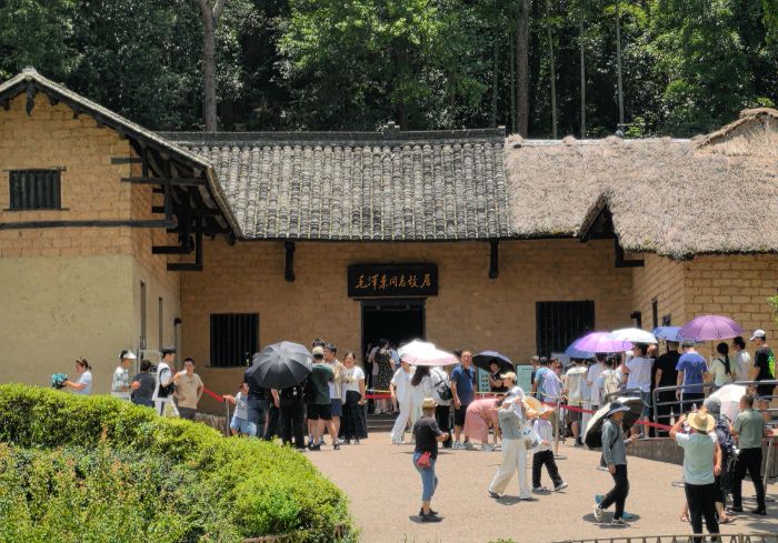 實踐隊前往湖南韶山毛澤東同志故居進行參觀。毛澤東銅像廣場上,隊員們整齊列隊,繞像瞻仰,深切緬懷偉人。毛氏宗祠與毛澤東同志故居內,質樸的生活用具,鮮明的生活場景,一件件展品,無聲訴說著少年毛澤東堅韌的成長歲月,生動再現(xiàn)了承載著宗族文化與信仰的毛家歷史與革命活動。