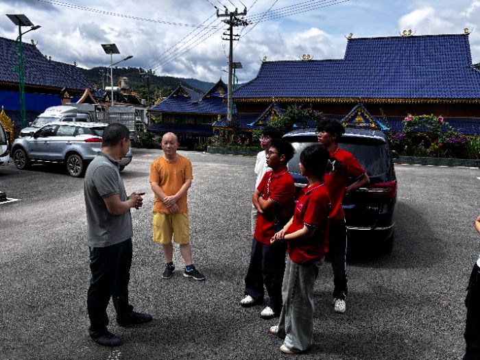 隨后,實(shí)踐團(tuán)又來到了利用鄉(xiāng)村振興銜接資金建設(shè)的大龍哈民宿。踏入大龍哈民宿,實(shí)踐團(tuán)成員跟隨村委講解員漫步,目光掠過傣式飛檐與太空艙玻璃幕墻的交融處,不時(shí)駐足詢問建筑工藝、運(yùn)營規(guī)劃,親身探尋鄉(xiāng)村振興銜接資金撬動(dòng)“生態(tài)+文旅”新場(chǎng)景的運(yùn)作軌跡 。