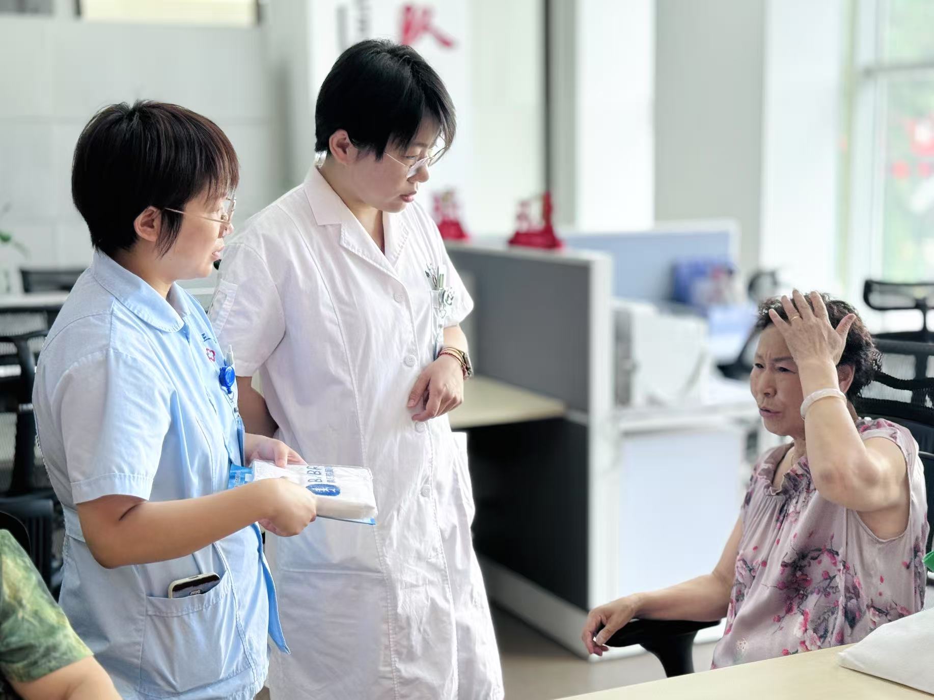 活動現場,心血管專家耐心為78歲的王阿姨解讀血壓報告,中醫科張大夫則現場為居民施針緩解關節疼痛,實踐隊員們有條不紊地協助完成血壓測量、血糖檢測、健康檔案登記等工作,并向居民發放精心設計的《家庭健康手冊》,普及常見慢性病預防知識。針對社區老年群體多、健康意識薄弱的現狀,專家們用通俗易懂的語言解答疑問,隊員們則通過互動問答、健康小游戲等形式,讓健康知識更加生動易懂。