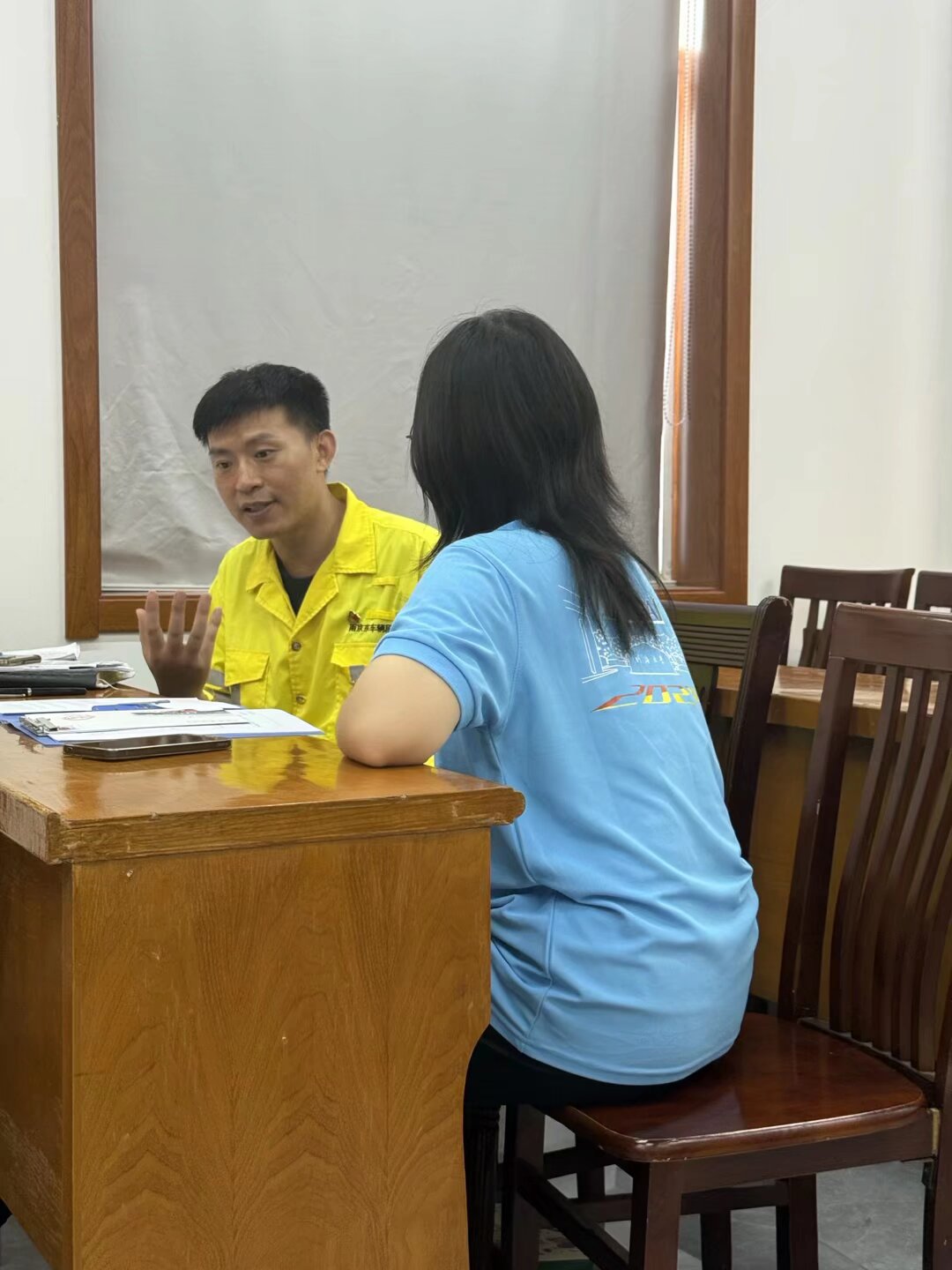 隨后,團隊成員們深入到南京東運用車間。走進寬敞明亮的運用車間,巨大的鐵路貨車整齊排列,工人們正有條不紊地進行著檢修作業。在與車間黨總支部書記徐亞東先生的訪談中,氣氛熱烈而融洽。書記結合自己的工作經歷,分享了在鐵路崗位上的成長與感悟。他表示,作為新時代的鐵路青年,要傳承老一輩鐵路人的紅色基因和優良傳統,以匠心守初心,以實干擔使命,在平凡的崗位上創造不平凡的業績。團隊成員們也積極發言,探討了新時代大學生如何將所學知識與鐵路事業發展相結合,如何在實踐中錘煉品格、增長才干等問題。通過交流,大家進一步明確了自己的責任與擔當。