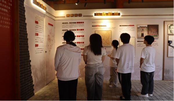 隊員們還先后參觀了初心公園、家風家訓館,肅立于初心公園的黨旗雕塑前,看著銘刻在墻上的鮮紅色的嶺下革命歷史,不禁肅然起敬,公園內鐫刻的革命箴言與領袖囑托,讓隊員們深刻體悟到“為中國人民謀幸福,為中華民族謀復興”的時代分量。