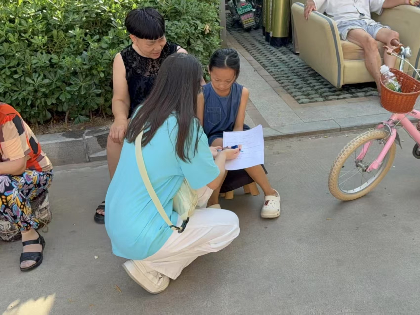 團隊成員用通俗易懂的語言講解垃圾分類、低碳出行、節水節電的妙招,揭秘了“白色污染”的危害,對居民進行問卷調查,了解居民的環保需求。