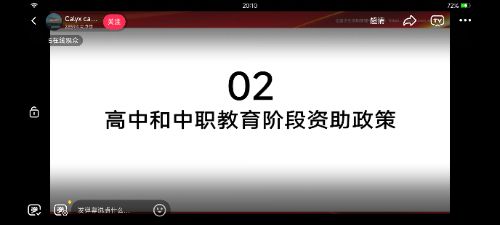 宣講過程中,在⾼等教育階段,團隊重點解讀⽣源地“信⽤助學貸款財政全額貼息,⽆需擔保,最⻓22年還款期”的核⼼優(yōu)勢,以及本專科⽣國家獎學⾦與⼴東省家庭經濟困難⼤學新⽣資助的互補關系; 針對義務教育階段,團隊清晰說明⾮寄宿⽣⽣活費補助標準;學前教育資助政策,引發(fā)家⻓⾼度關注。現場有學⽣不禁感嘆道:“原來我讀⼤學還有這么多政策⽀持呢”