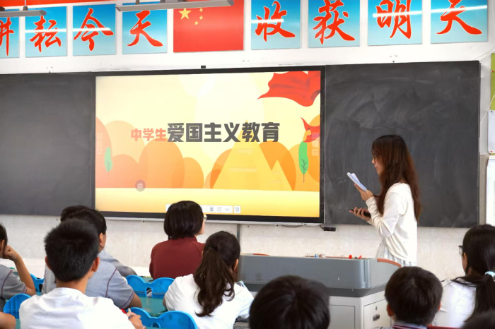 他們以“愛國主義教育”為切入點,通過圖文展板和設答的方式,向學生講述歷史上著名的渡江戰役(千里江淮支前忙)和黃橋戰役(黃橋燒餅暖兵心)中的泰州力量。在關于國家象征(國旗、國徽、國歌等)的提問中,學生們積極回答實踐團成員的問題,達到鞏固的效果。同時,他們強調:“紅色基因是一種革命精神的傳承。”