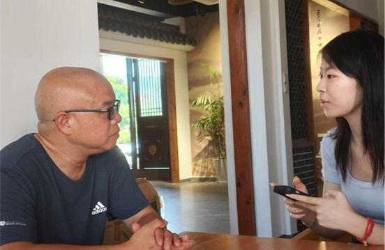 圖為團(tuán)隊(duì)成員何宜霖采訪車間主任。金山供圖
