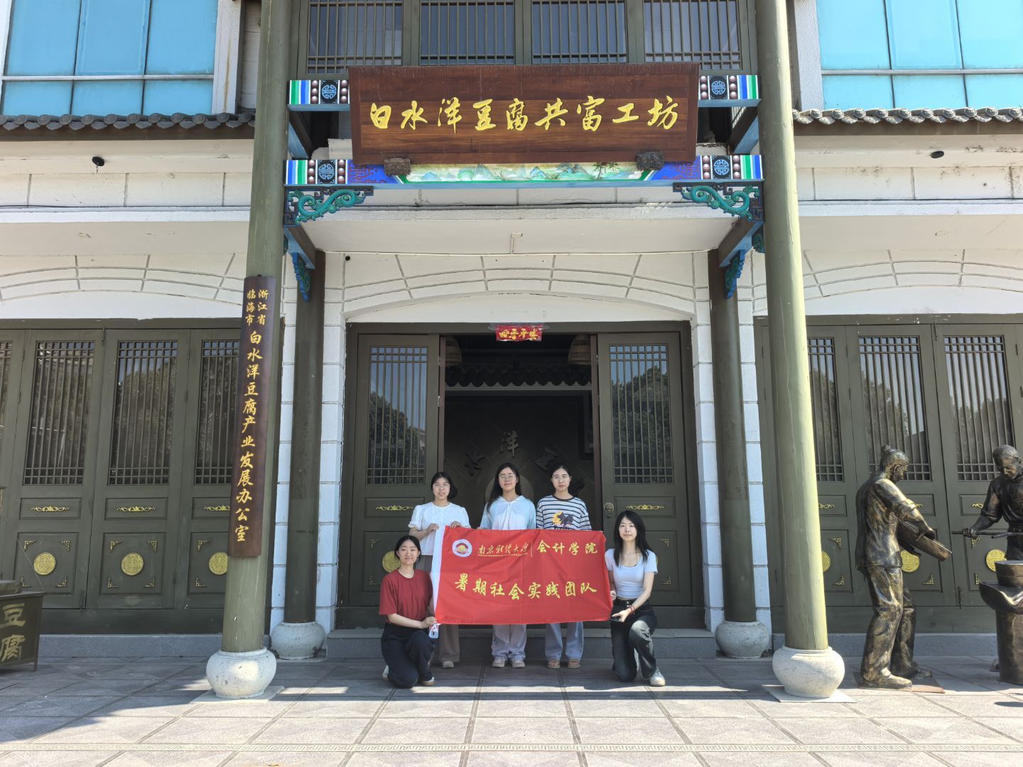 在鄉村振興的宏大敘事中,特色產業的發展成為關鍵篇章。白水洋的豆腐產業,憑借百年傳承的制作工藝與獨特風味,在當地經濟發展中占據重要地位。然而,這一傳統產業在現代化進程中也面臨著諸多挑戰。7月29日至7月31日南京財經大學會計學院“青力青為,浙里共富”暑期社會實踐隊深入浙江省臺州市白水洋鎮,對當地豆腐產業展開調研,在與菜市場攤販交流、考察共富工坊以及探訪產業直營店的過程中,探尋產業發展現狀與未來方向。