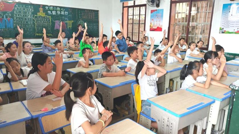考慮到孩子們的英語基礎存在差異,團隊建立了“一生一冊”積分制。積分可在結課儀式上兌換文具和手工藝品,這一機制大大激發了孩子們的學習主動性。課堂上,常常能看到孩子們高高舉起的小手,聽到他們爭先恐后用英語回答問題的聲音。